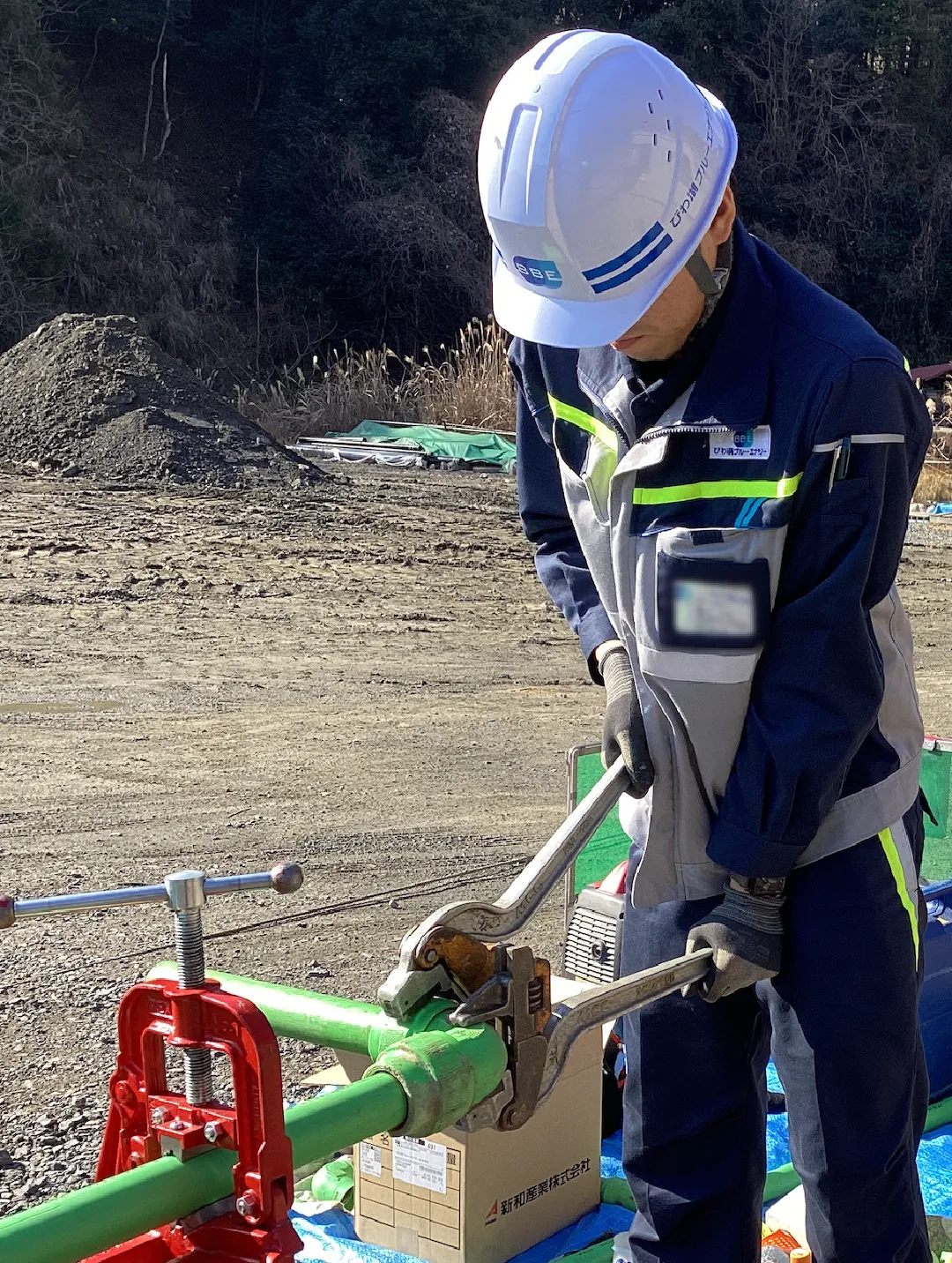 検知器を用いてガス漏れ修繕後の漏れ確認をします
